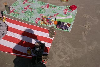 Pre rogue wave, we laid out the proclaimed essentials with as much care as one can with the coastal wind.